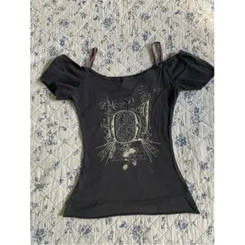 女性用半袖ゴシックトップ,90年代の古着,パンクTシャツ,セクシーなトップス,カジュアルな夏のストリートウェア,ホットガール